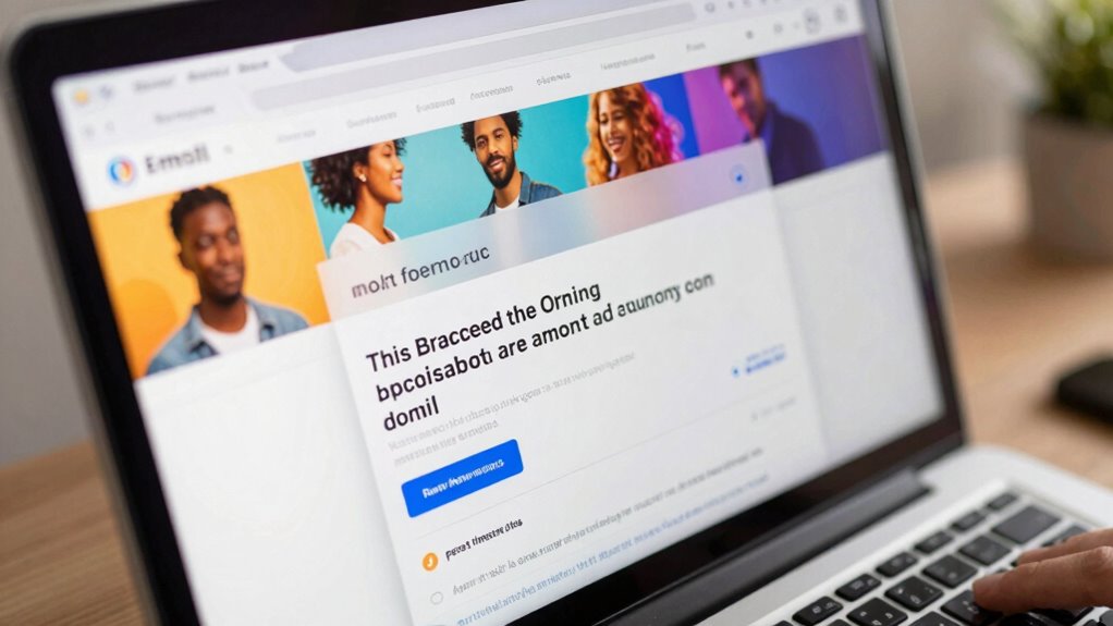Remember, designing emails that communicate without relying solely on images is like building a sturdy bridge—your message should stand strong even when visuals fall silent. By using clear structure, effective alt text, and thorough testing, you guarantee your message remains accessible no matter what. Embrace these strategies, and you’ll keep your campaigns resilient, turning potential roadblocks into stepping stones toward better engagement. After all, a well-crafted email is a message that speaks loud and clear, beyond just the visuals.