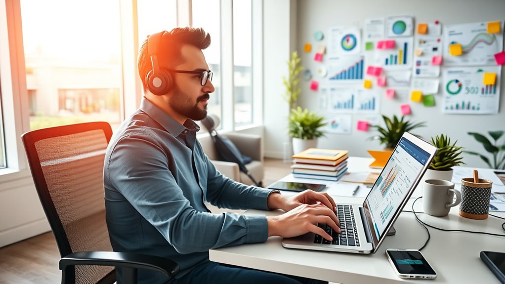 As an email marketing manager, you start your day analyzing campaign performance, customer feedback, and segment open rates to identify what works best. You clean your email list by removing invalid contacts and optimize content based on previous results. Throughout the day, you monitor real-time metrics, adjust send times, and set up automated workflows. By staying updated on industry trends, you continuously refine your strategies—so, if you keep exploring, you’ll discover even more ways to boost your email success.