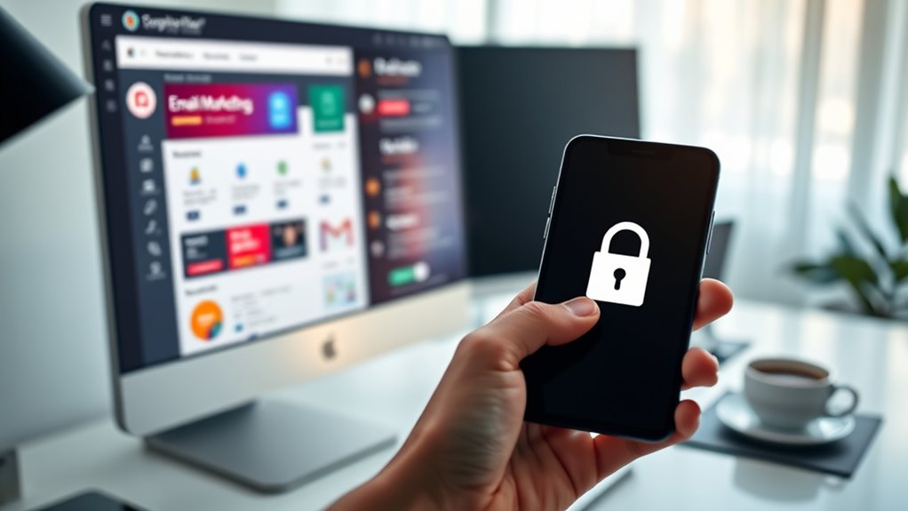 To implement privacy-first email marketing effectively, you should prioritize data encryption to protect customer information and use clear consent management practices. Always obtain explicit permission before sending emails and offer easy options to unsubscribe. Regularly review privacy policies, keep data secure, and be transparent about how you handle personal information. These steps help build trust, comply with regulations, and ensure your marketing strategies are both ethical and effective.