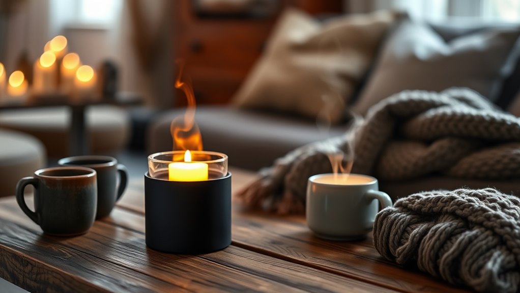 Ease of use plays a significant role in choosing the right candle warmer lamp. I look for models with intuitive controls, like easy-to-adjust dimmers, timers, and height settings, so I can customize the experience effortlessly. Clear instructions or labels are essential, especially if I’m new to candle warmers, ensuring I can operate it safely without guesswork. Automated features, such as automatic shut-off, provide peace of mind, reducing the need for constant supervision. I also prefer accessible adjustment mechanisms like twist or slide controls for quick, precise changes. Ultimately, a design that’s easy to clean and maintain—such as smooth surfaces and simple bulb replacements—makes daily use hassle-free. Overall, a user-friendly candle warmer enhances my cozy experience without unnecessary complications.