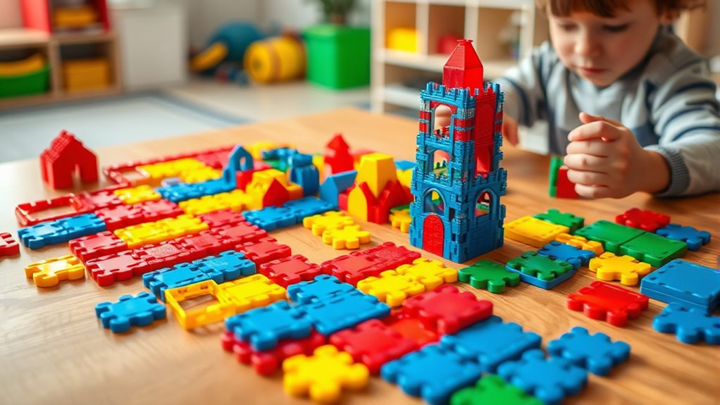 When choosing magnetic tiles for kids, I focus on safety, quality, and how well the sets expand to grow with your child. I also consider design variety, age appropriateness, and how easy they are to assemble. These factors help make certain you pick a set that’s both fun and safe for your little ones.