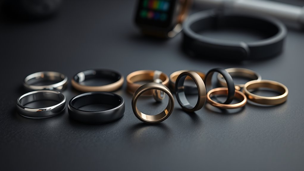 If you’re looking for the best smart rings in 2025, I recommend models like the Oura Ring 4, RingConn Gen 2 Air, and the Smart Health Ring 2. These rings combine advanced sensors, long battery life, and durable, stylish designs perfect for ongoing health tracking. They monitor sleep, activity, heart rate, and more, fitting seamlessly into active lifestyles. Want to discover which one suits your needs? Keep exploring to find out more.